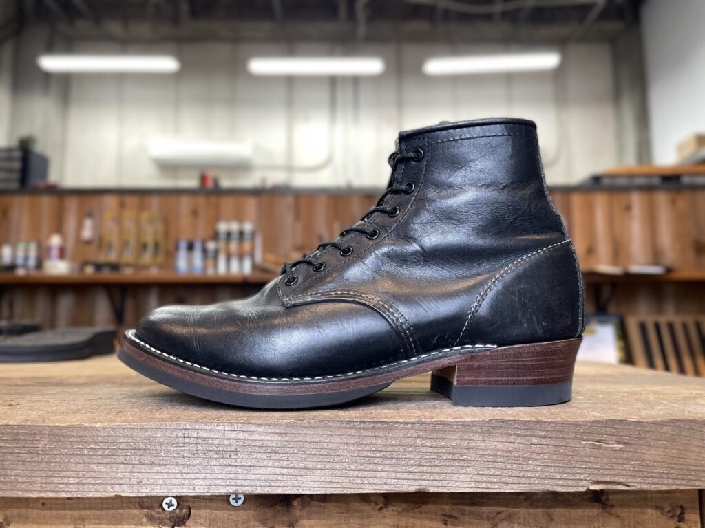 色を変えると別物に生まれ変わります。レッドウイングのラインマンをオールブラックへ!